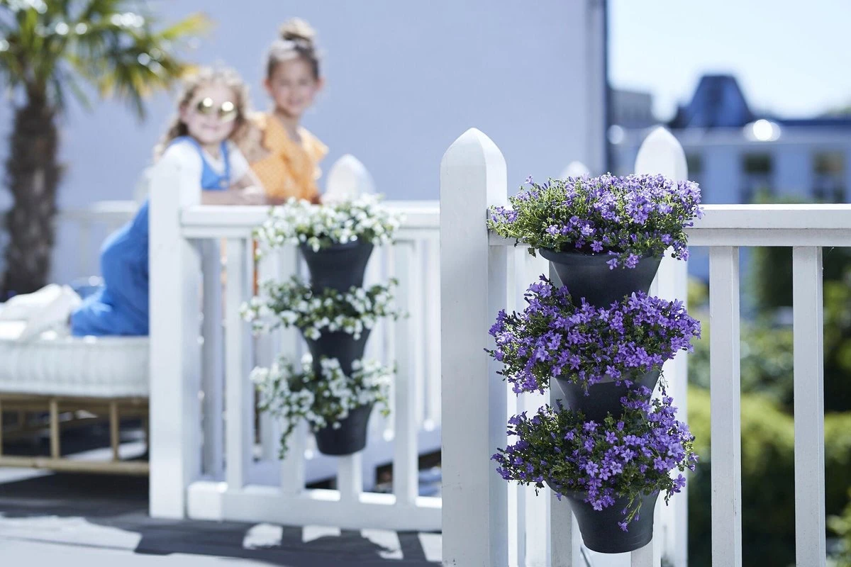 Als jouw terras of balkon niet groot of groen genoeg is, ga jij gewoon heel creatief de hoogte in! Ga verticaal tuinieren en combineer eindeloos veel planten en bloemen met elkaar op je balkon, terras, muur of schutting. De set met 3 potten wordt standaard geleverd met balkon- en muurhaken en is dus overal te plaatsen. De potten zijn voorzien van een handig overlooppijpje. Zo staan je plantjes nooit te nat, zijn ze beschermd tegen wortelrot en worden de plantwortels perfect belucht. Kun jij nog langer van ze genieten!